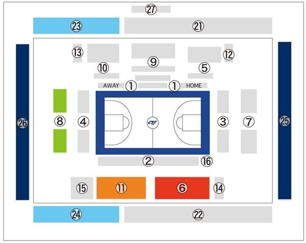 ◆アリーナ内の既存設備、ゴール支柱、広告等により一部の席種からコートの一部が見えにくい可能性があります。予めご了承いただいた上でお買い求めください